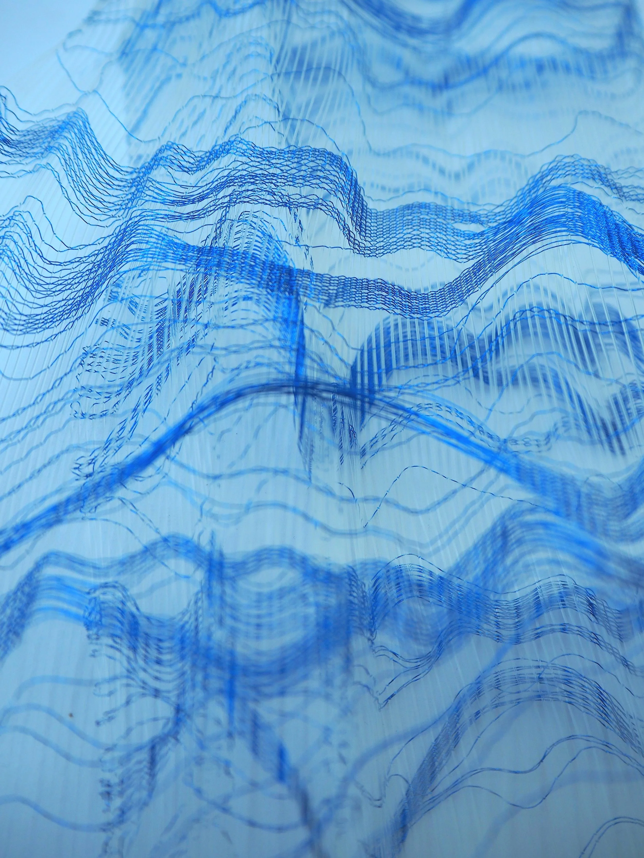 A small series of experimental weaving samples with open and closed structures, using floats, metallic yarn and monofilament to create reshapeable, flexible structures.